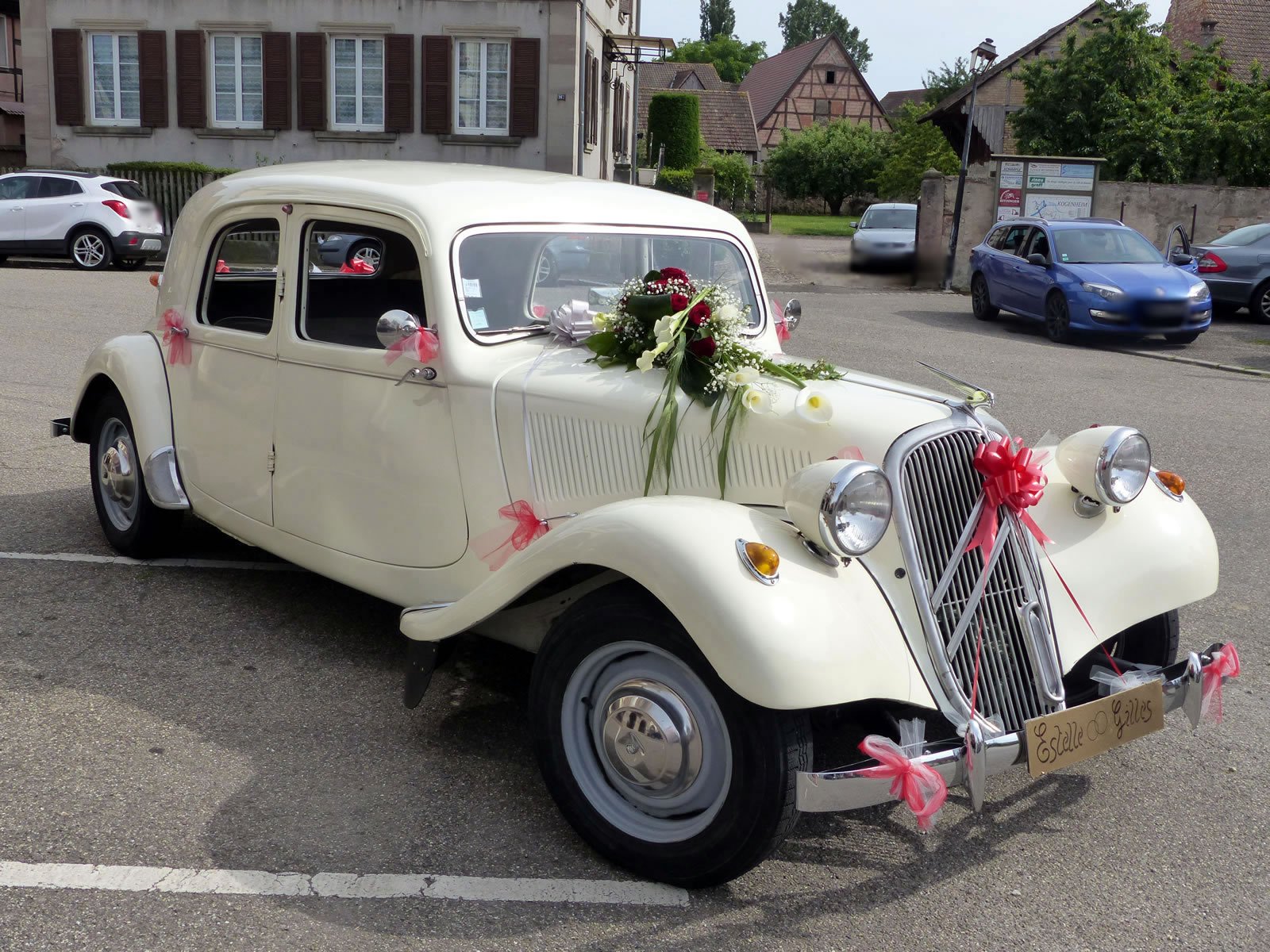 Dans le cadre d'un mariage dans le Haut-Rhin, une voiture de collection apporte élégance et authenticité.