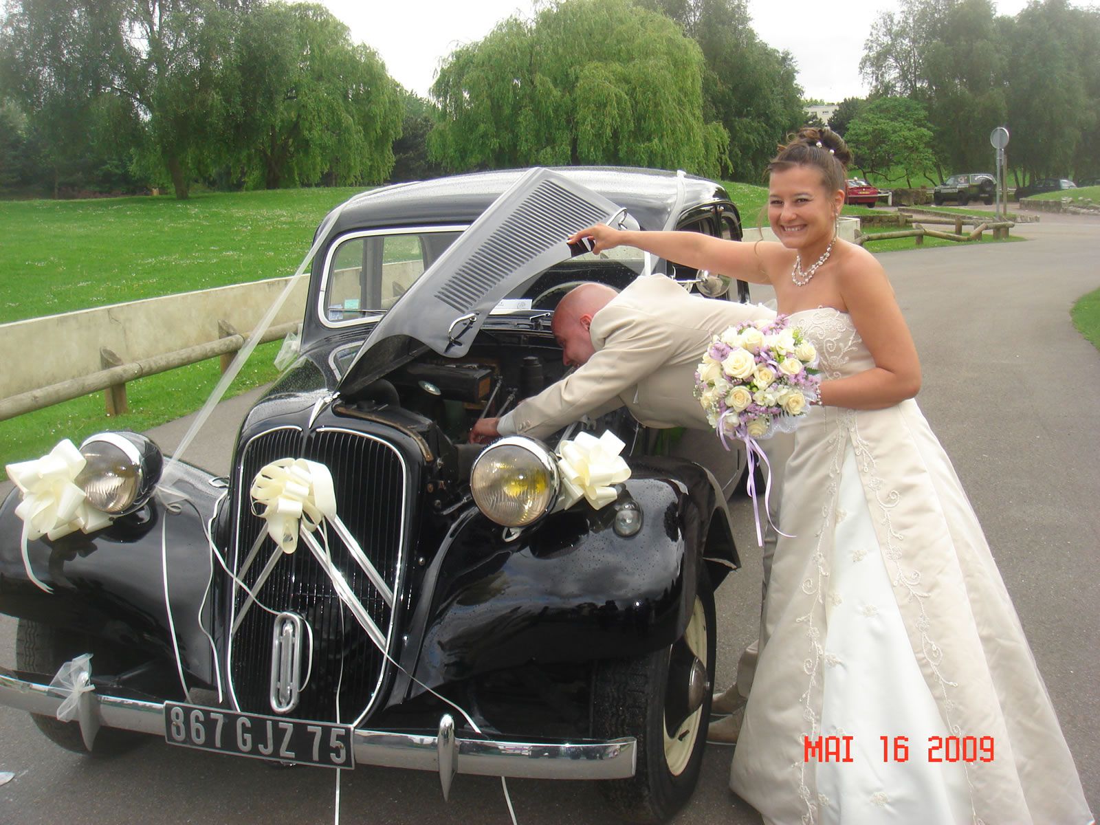 Pour un mariage dans les Hauts-de-Seine, une voiture de collection sublime votre arrivée.